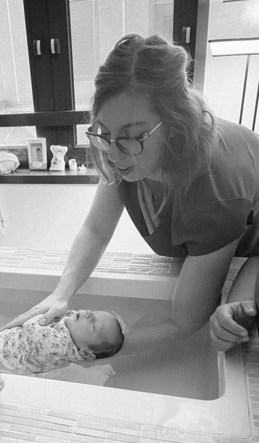 Ce moment suspendu permet au nouveau-né de retrouver les sensations vécues in utero : la chaleur de l’eau, la contenance, la légèreté, les mouvements enveloppants… Tout concourt à recréer un cocon familier.